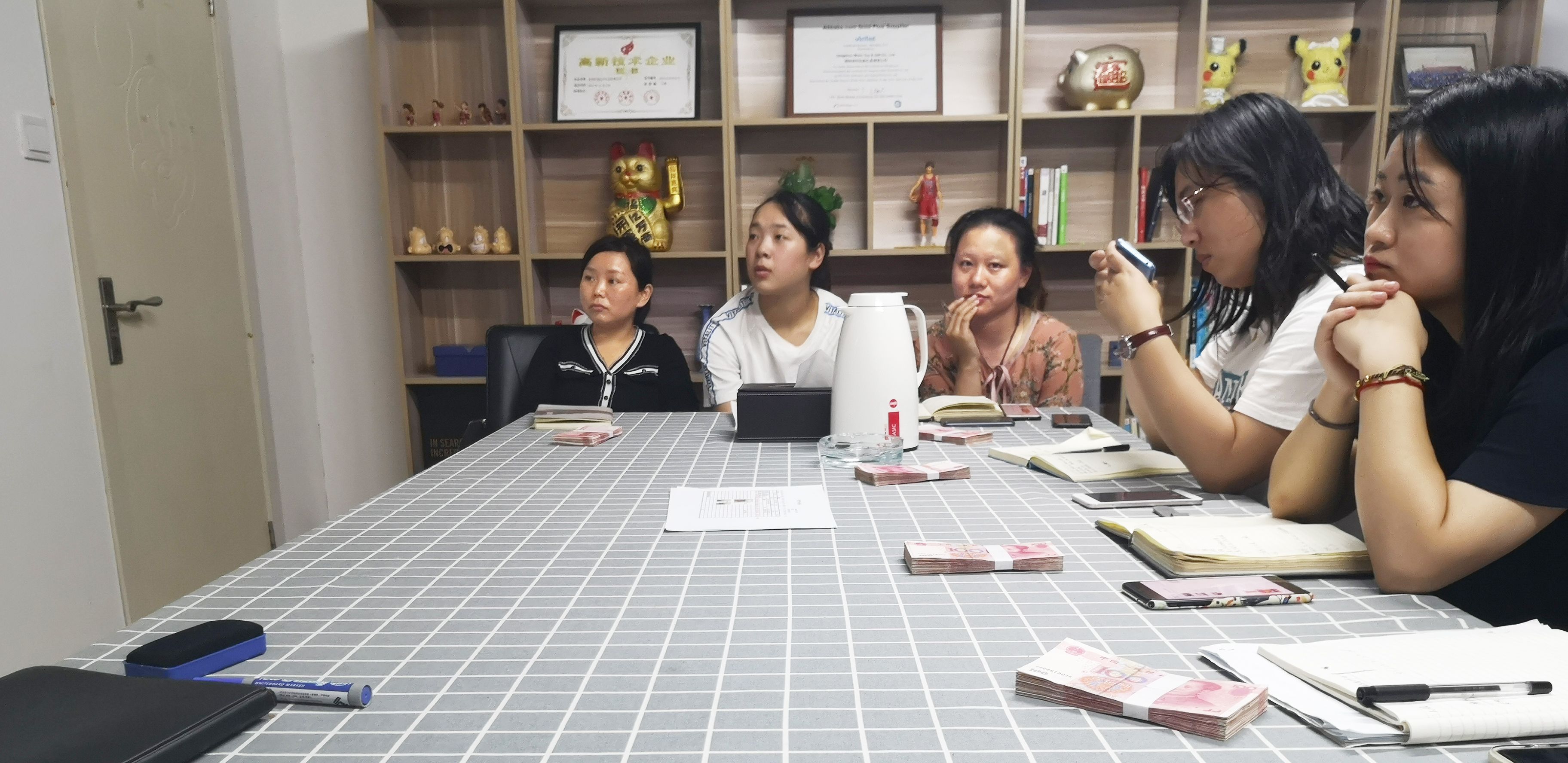 在今天长达三小时的会议上,大家各抒己见,从选品到推广再到生产出货,我们考虑着每一个可能性,考虑到每一个碰到的问题如何解决等。最终,敲定了整个计划流程,由我们的BOSS带头,在“军令状”上签订了自己的名字。