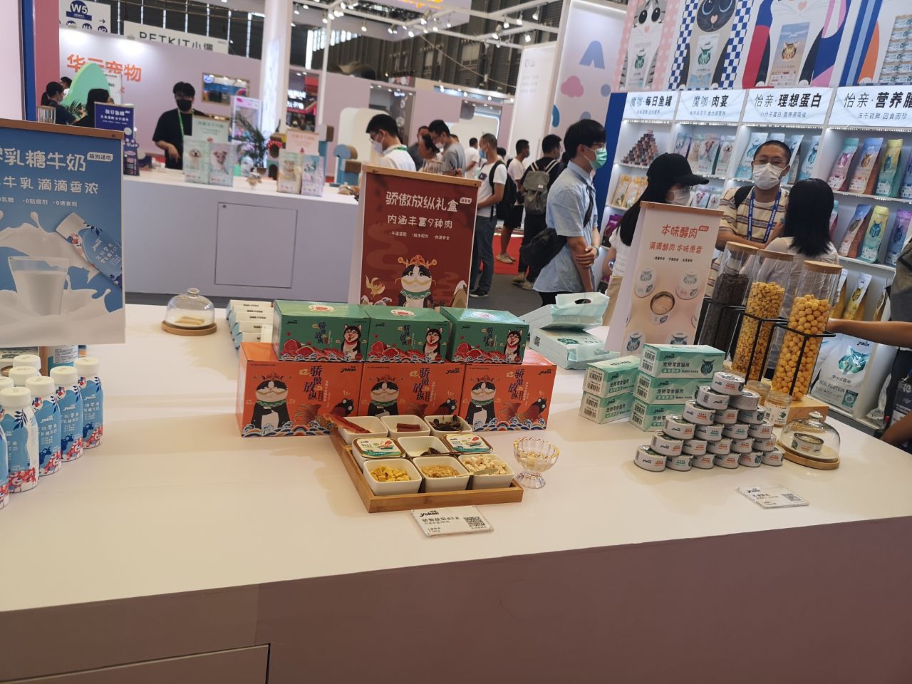 小编和同事一进场,就被眼前各式各样的宠物用品迷了眼,平日里宠物的粮食只是其中一小块,里面还有各种各样的高科技产品,比如自动猫厕所,恒温恒氧的猫包,狗自动烘干机等等。还有许许多多没有见过的宠物零食,比如牛喉,兔耳朵,骆驼脸等等,总结下来,真是现在人活着不如狗系列啊!